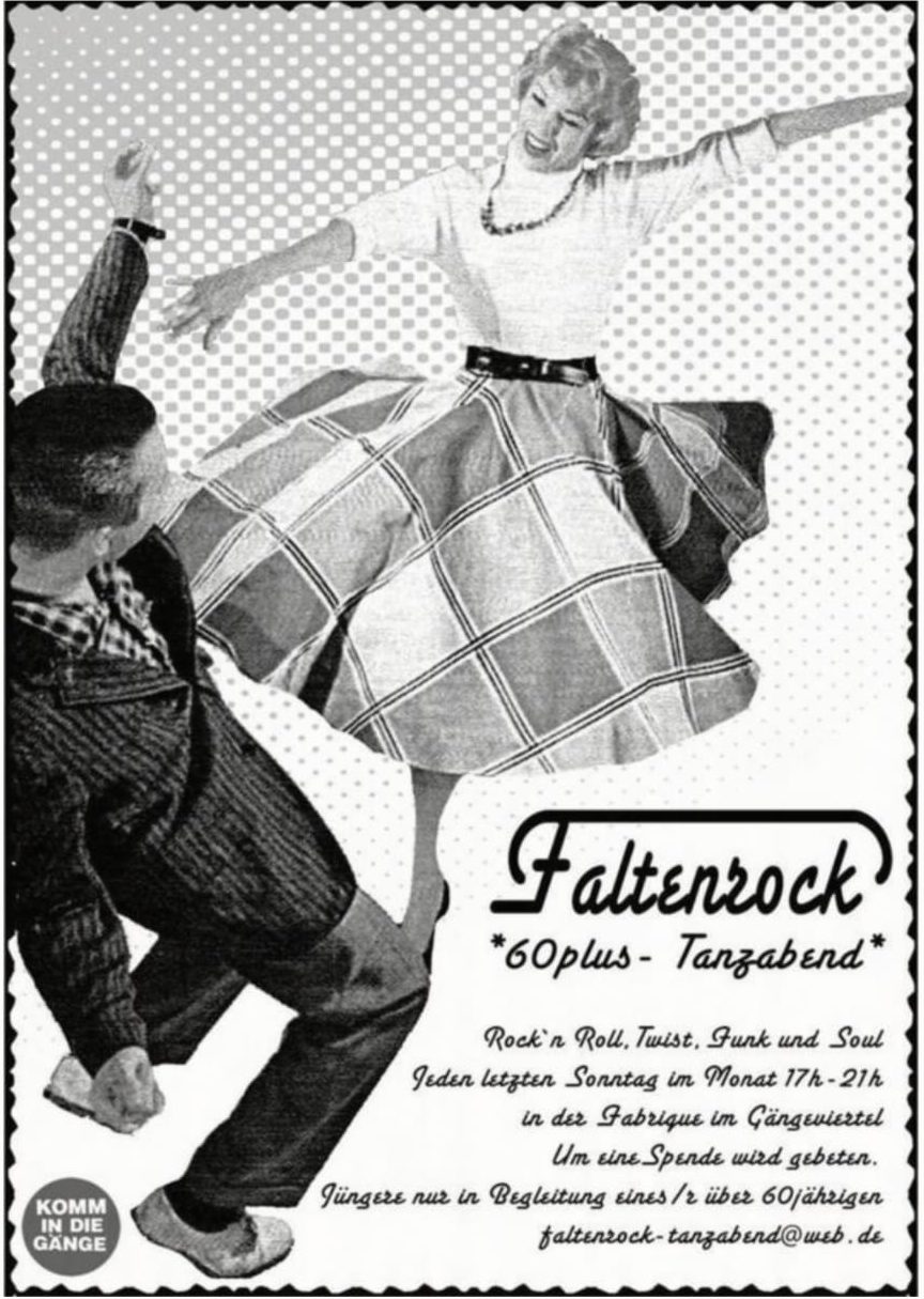 FALTENROCK ist eine Tanzveranstaltung für Menschen ab 60 Jahren im Hamburger Gängeviertel, die dort seit Oktober 2011 immer am letzten Sonntag des Monats von 17-21h stattfindet.